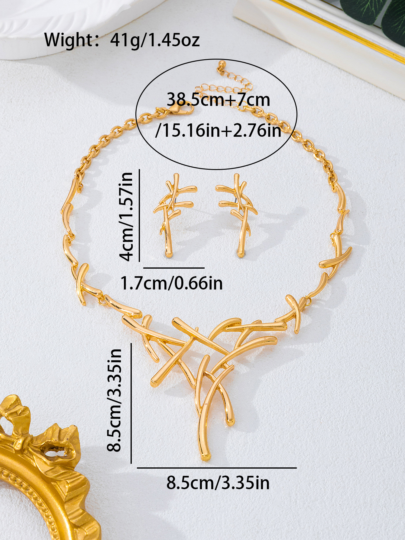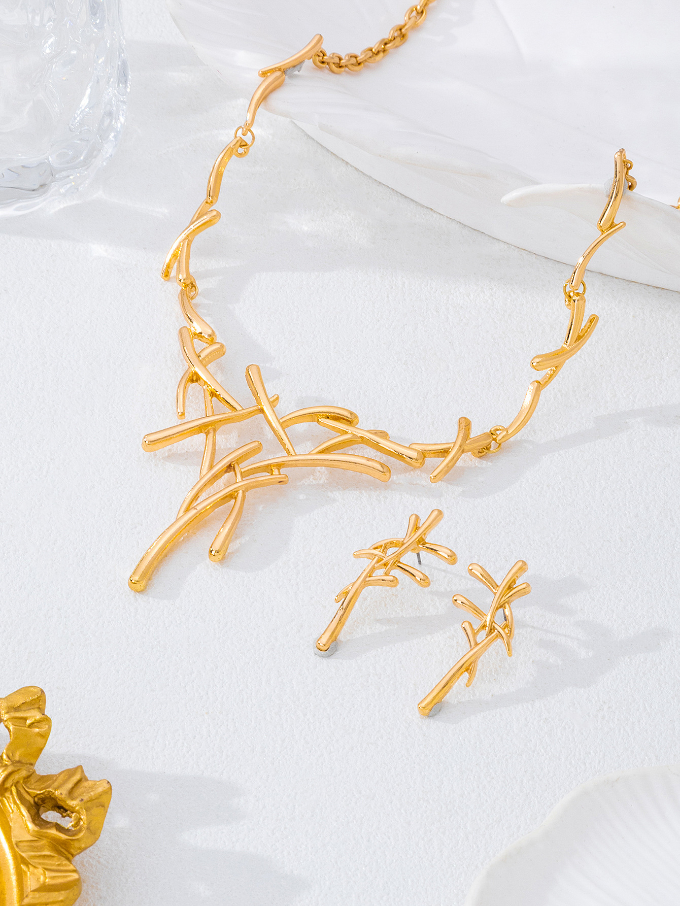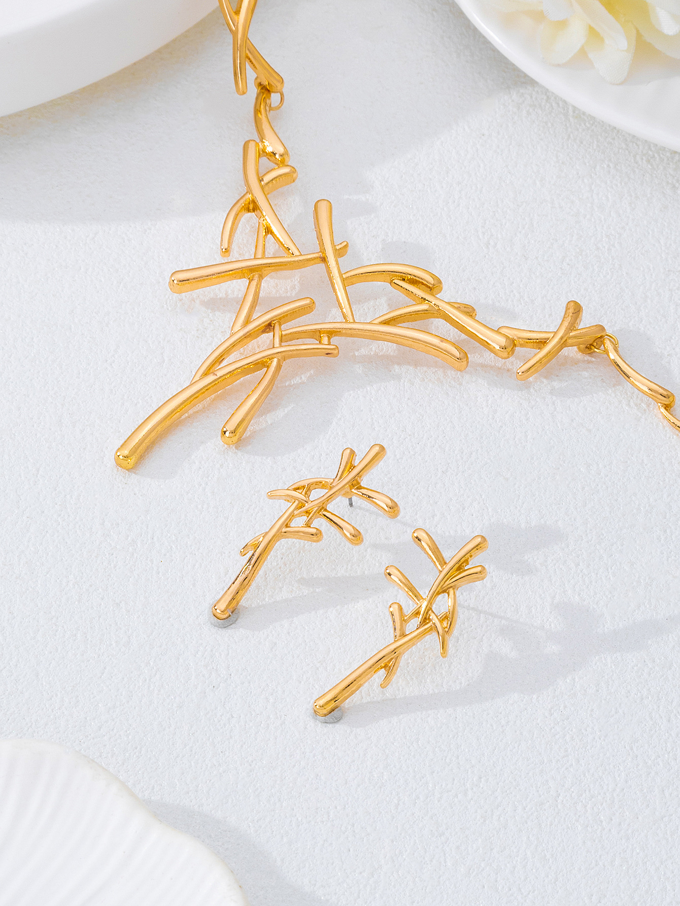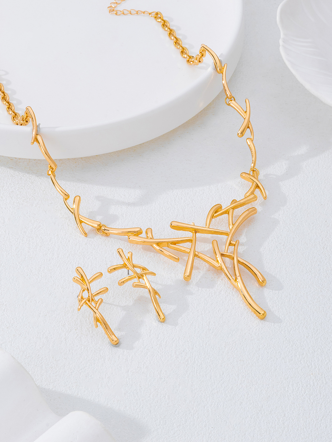 Ensemble collier et boucles d’oreilles à lignes croisées