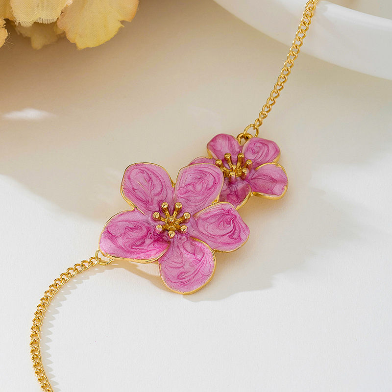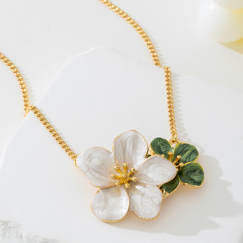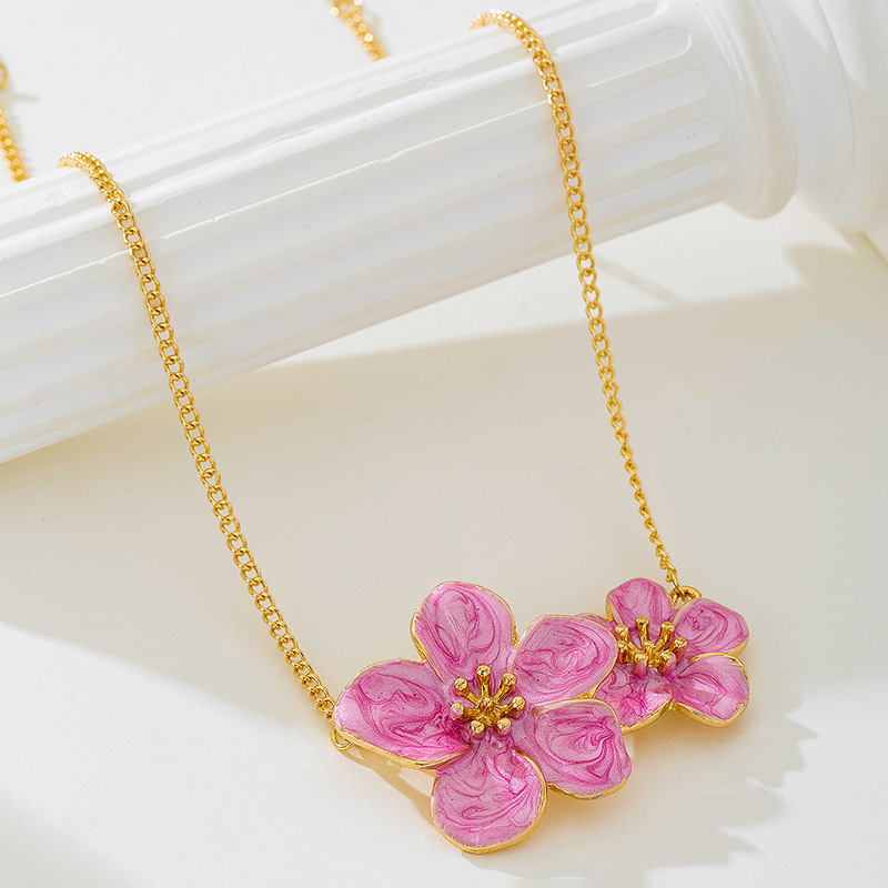Collier pendentif fleur colorée émaillée élégant